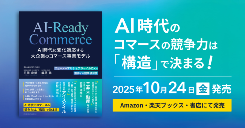 AIコマースプラットフォーム「ecforce」を提供する株式会社SUPER STUDIO(所在地:東京都目黒区、代表者:代表取締役社長 CEO 林 紘祐、以下:SUPER STUDIO)は、書籍「AI-Ready Commerce AI時代に変化適応する大企業のコマース事業モデル」を、全国の書店やAmazon、楽天ブックスにて本年10月24日(金)より発売することをお知らせします。